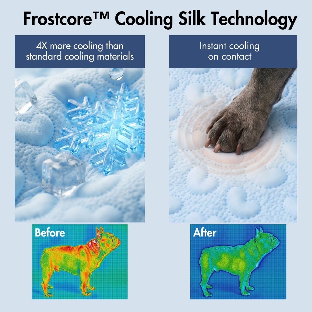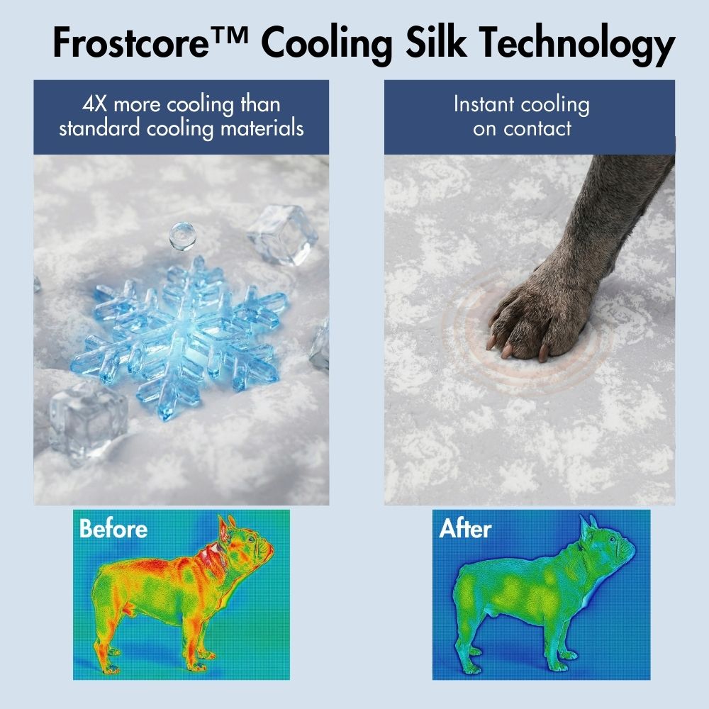 • Made with Frostcore™ cooling fabric, the surface pulls heat away on contact to deliver an instant, refreshing cool feel—perfect for hot summer days and overheated pups.