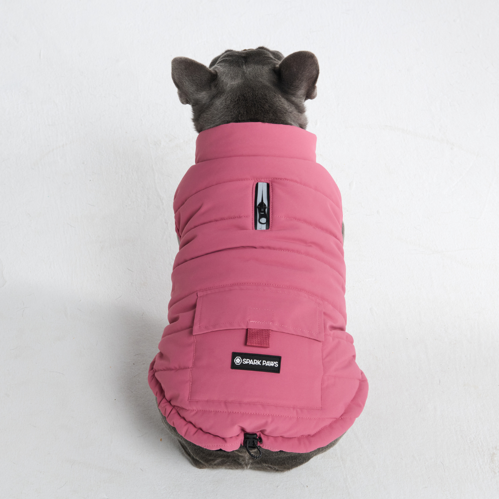 This sleek tech-wear inspired parka will keep your dog dry and warm on the coldest winter days.